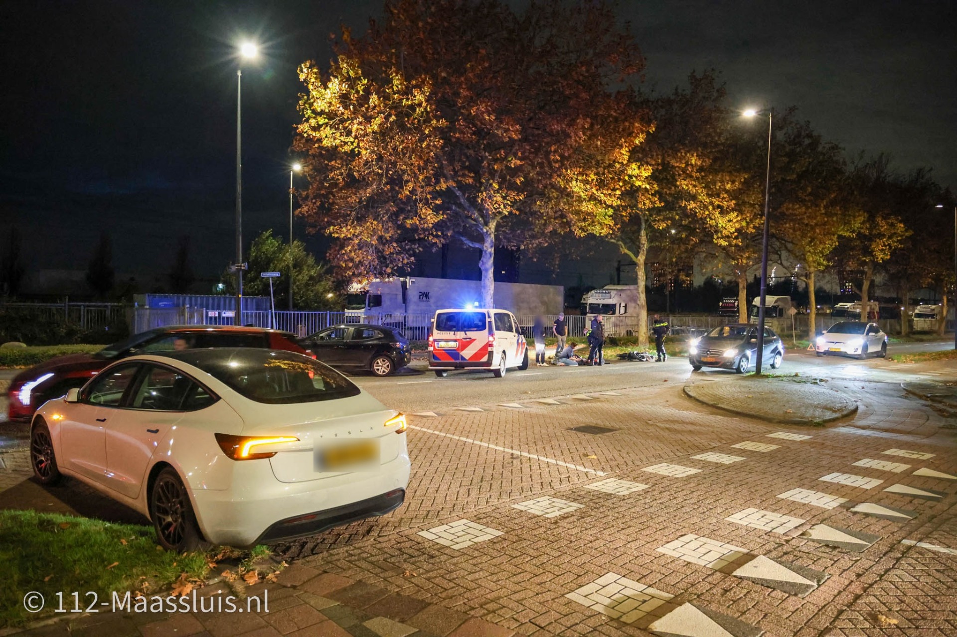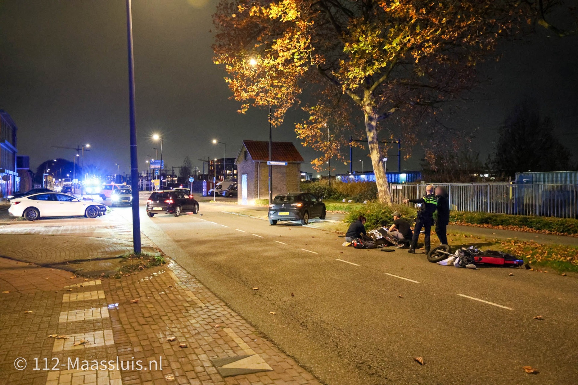 Rond 18.00 uur heeft een aanrijding plaatsgevonden tussen een auto en een brommer op de Industrieweg, ter hoogte van het Mackayplein. De brommer, die uit de richting van Maassluis-Centrum kwam, botste op een auto die vanaf het Mackayplein de Industrieweg op wilde rijden. Daarbij raakte de brommer de voorzijde van de auto en kwam verderop hard ten val. De precieze toedracht van het ongeval is nog onduidelijk.