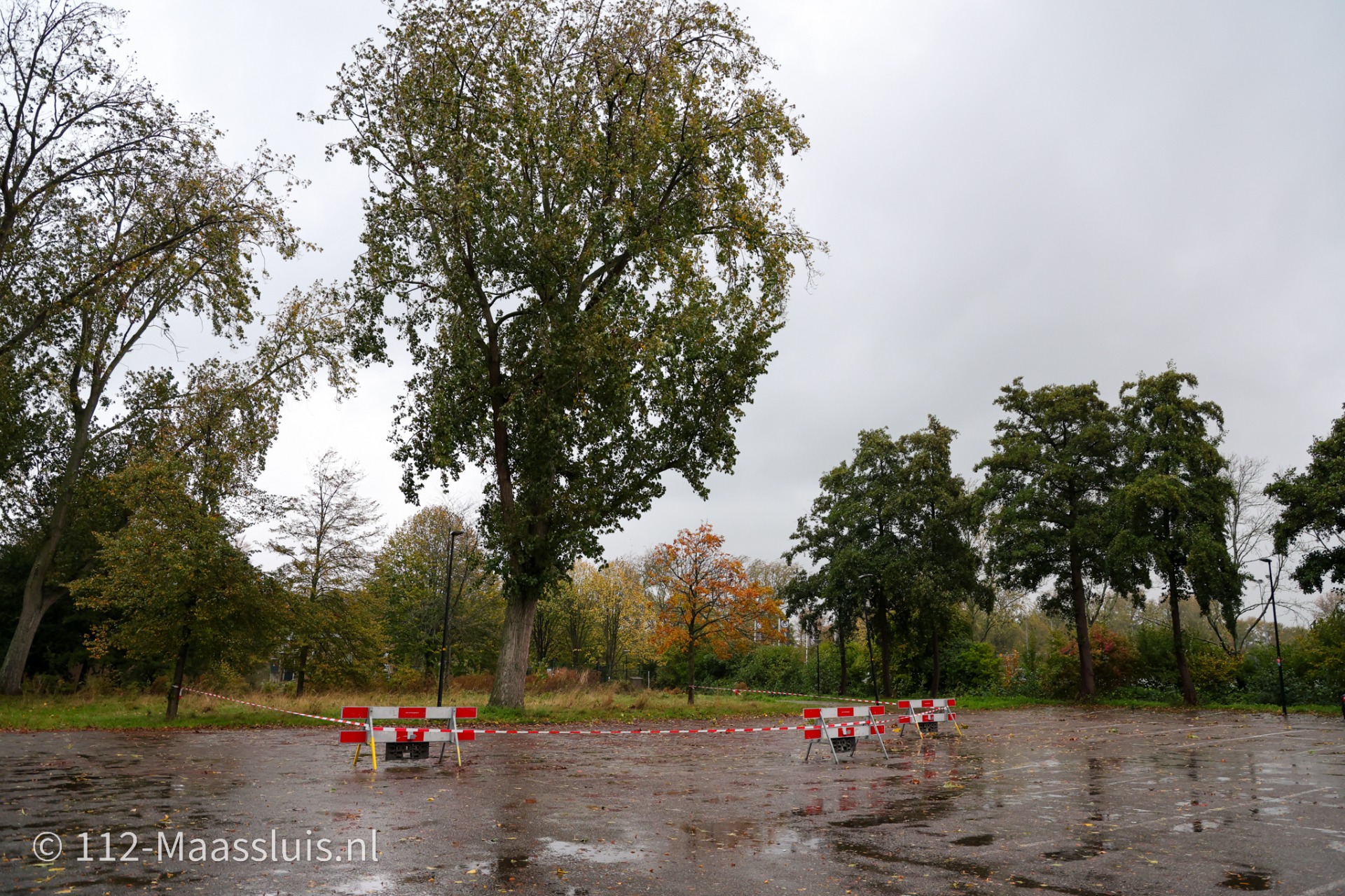 - 18:50 De bomen houden zich kranig, op een paar kleine afgebroken takken na. De op de parkeerplaats nabij VDL staat wel een afzetting.