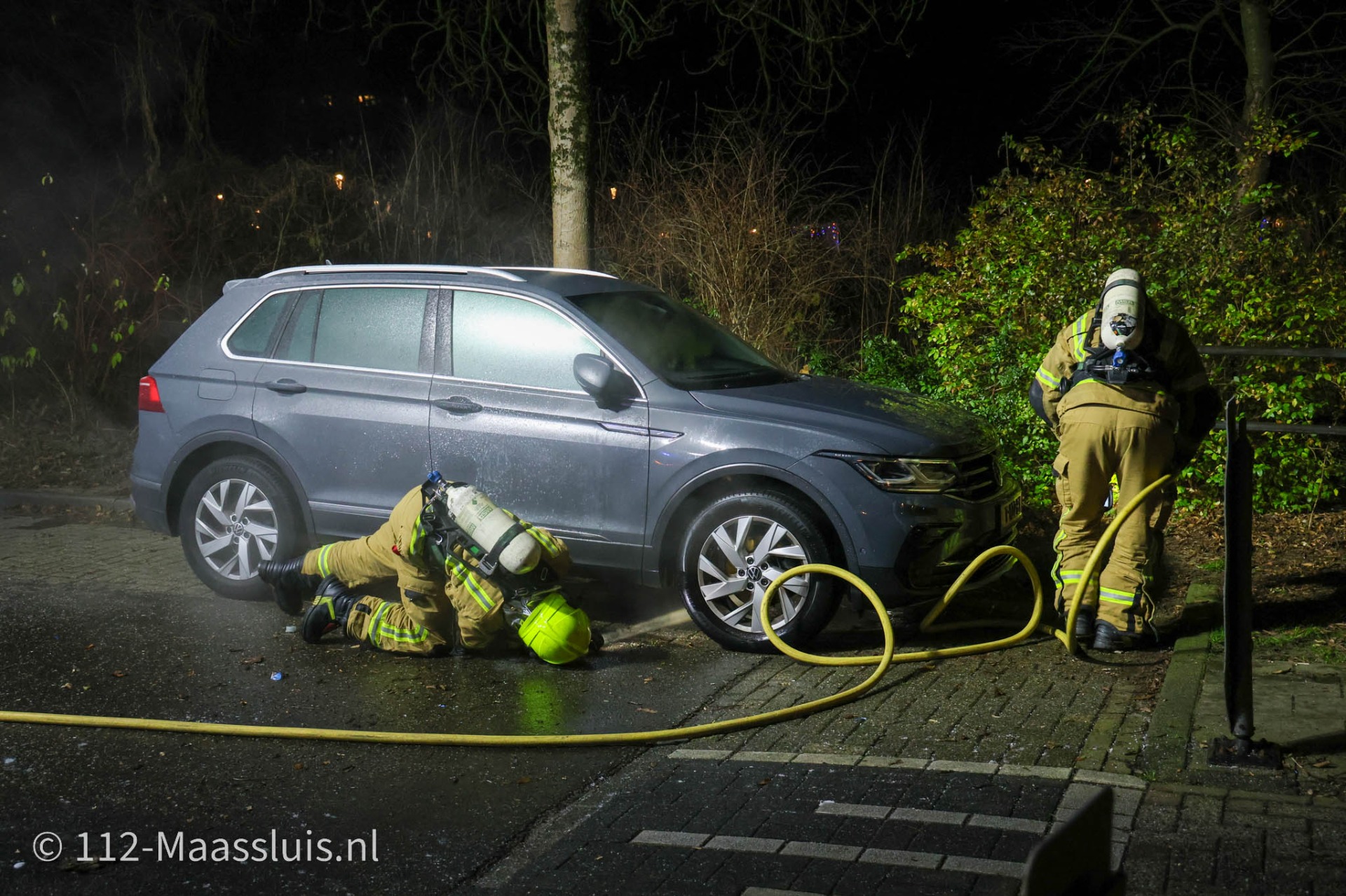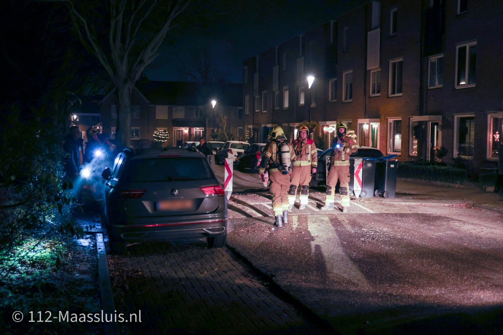 Twee minuten later kwam er opnieuw een melding binnen, ditmaal van een voertuigbrand aan De Ververij. Ter plaatse bleek een auto in brand te zijn gestoken, vermoedelijk met een zwaar stuk vuurwerk en een brandbare vloeistof. De geur hiervan was nog duidelijk aanwezig. Geschrokken buurtbewoners wisten met eigen blusmiddelen verdere schade te beperken.