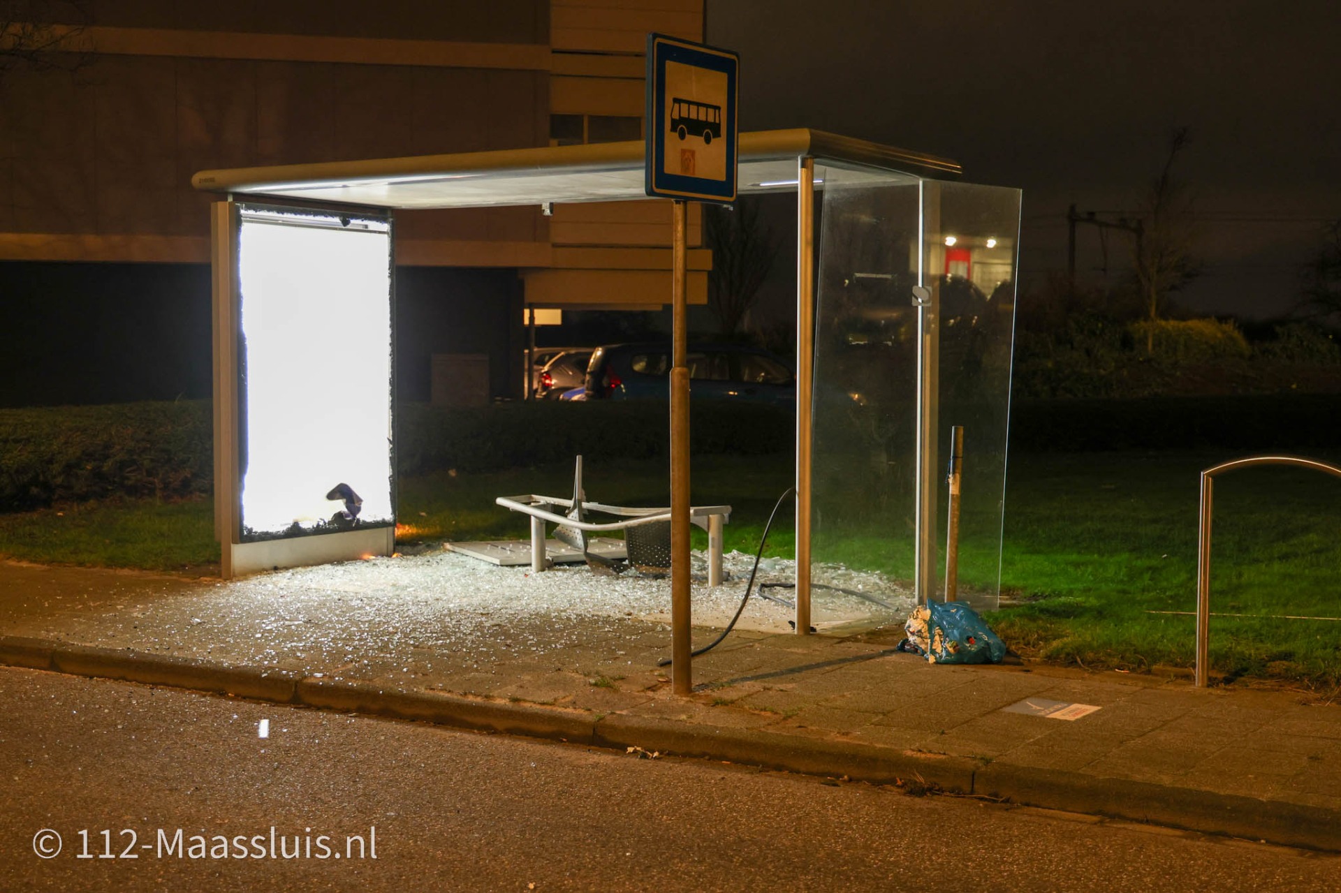 Ook op de Merellaan is een abri volledig verwoest.