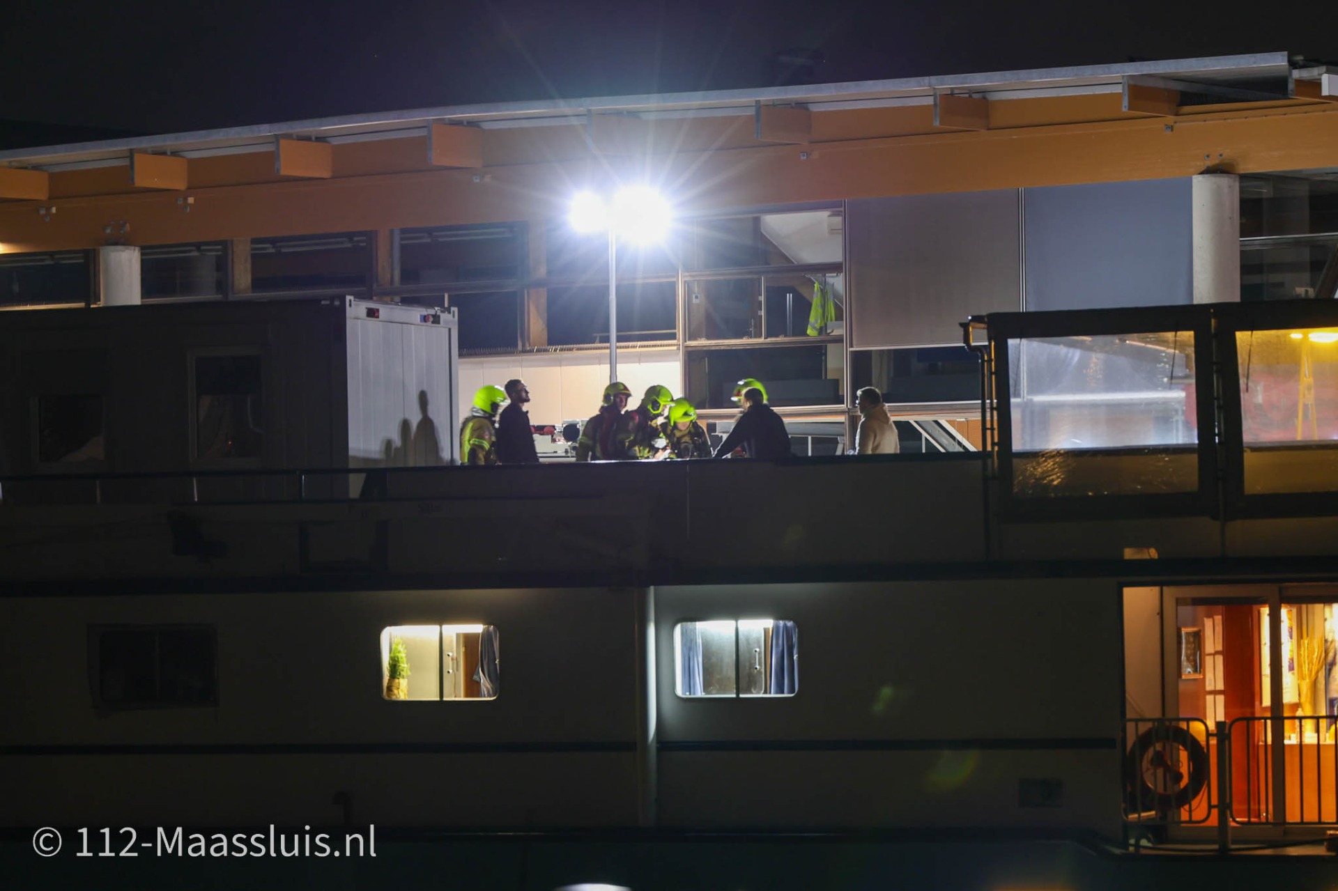 Woensdagavond om 21.22 uur kreeg de brandweer van Maassluis een melding van een mogelijke scheepsbrand aan het Kerkplein. Het betrof het COA-schip, ook wel de asielboot, aan de Heldringstraat achter de gemeentewerf.