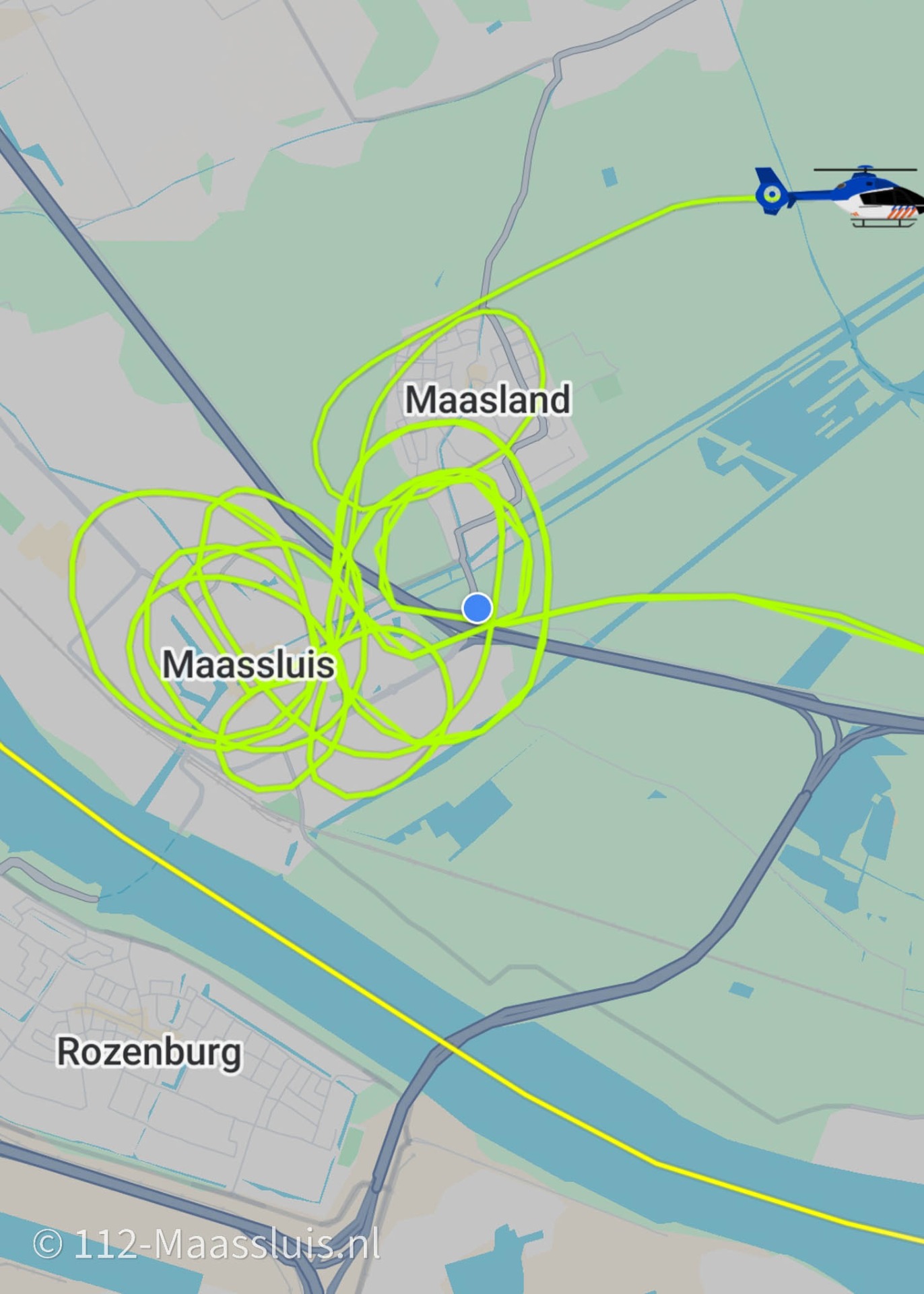 Ongeveer een half uur vóór de scheepsbrand was er een helikopter boven Maassluis te horen, die geruime tijd boven de omgeving cirkelde. Mogelijk hield dit verband met een voertuig dat schade had veroorzaakt en waarvoor vanuit de lucht werd gezocht.
