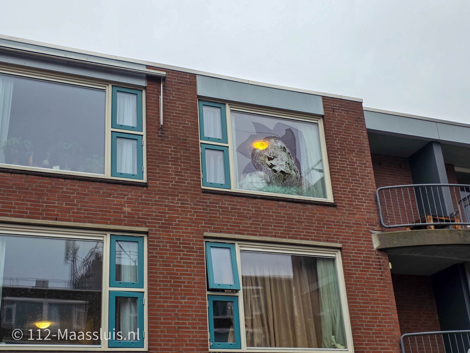 Aan de voorzijde van het appartement zijn sporen zichtbaar die erop wijzen dat zich binnen iets heeft afgespeeld.