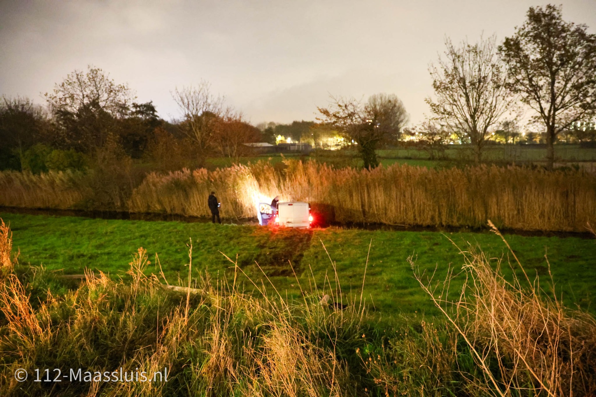 Een auto die uit de richting van Maasdijk kwam, reed rechtdoor over de dijk, door een hekwerk, stuiterde en kwam met een plons tot stilstand in de sloot. De bestuurder wist op eigen kracht uit het voertuig te komen.