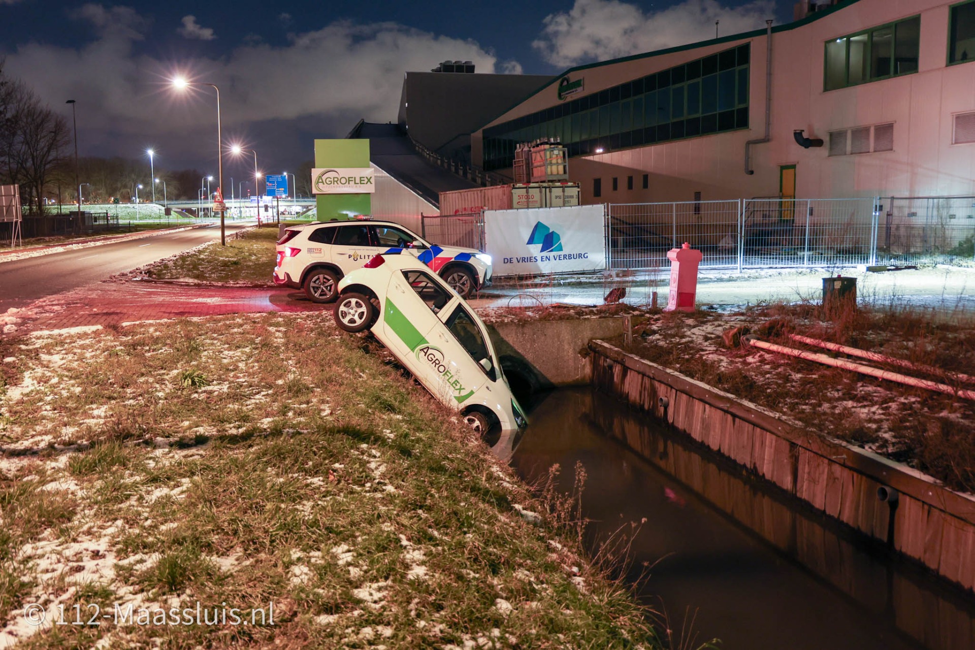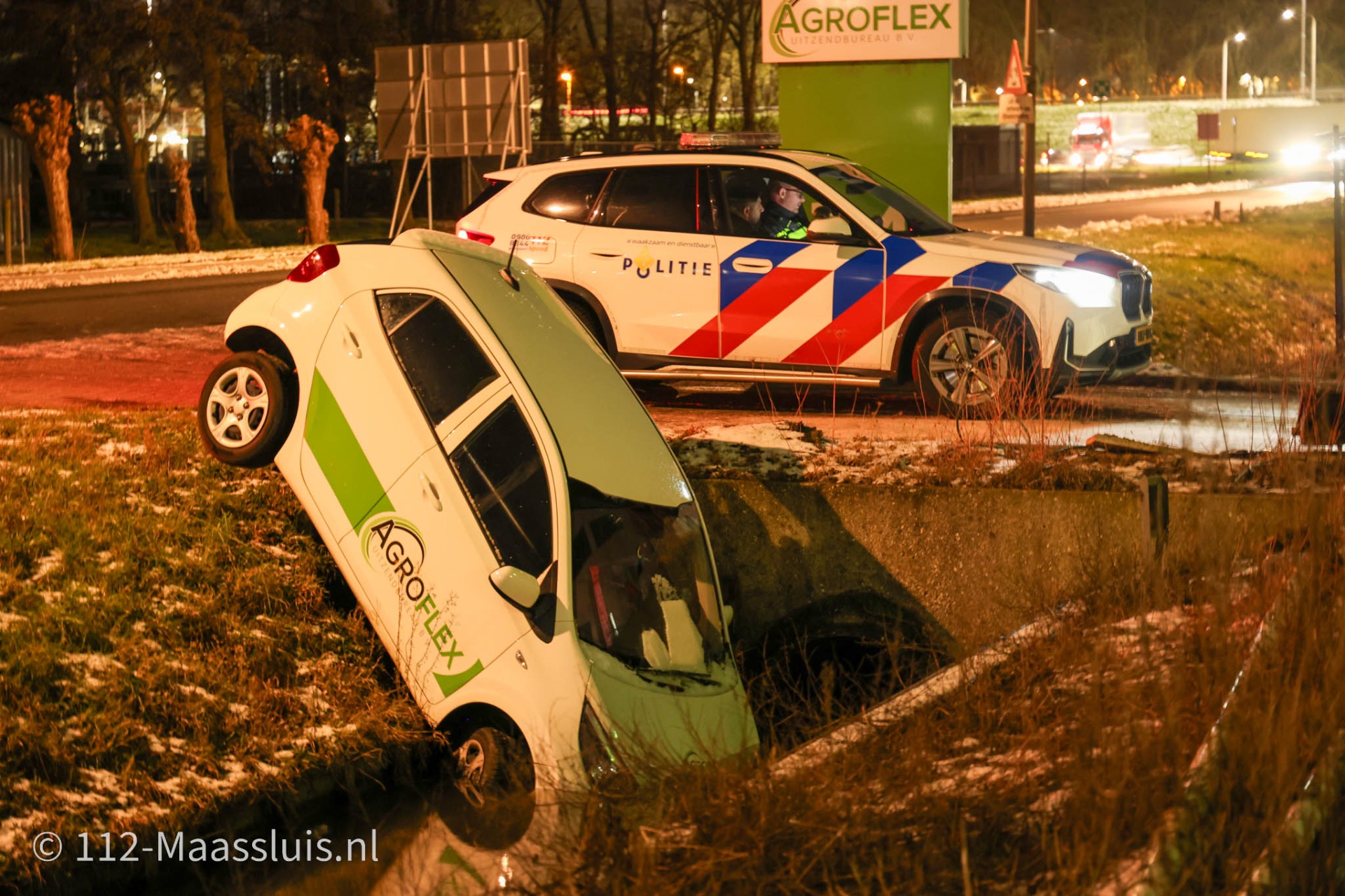 Zondagavond omstreeks 18.45 uur is een voertuig is vermoedelijk door gladheid van de weg van de rijbaan geraakt en met de neus in het water van een naastgelegen sloot terechtgekomen. Het betrof een eenzijdig ongeval